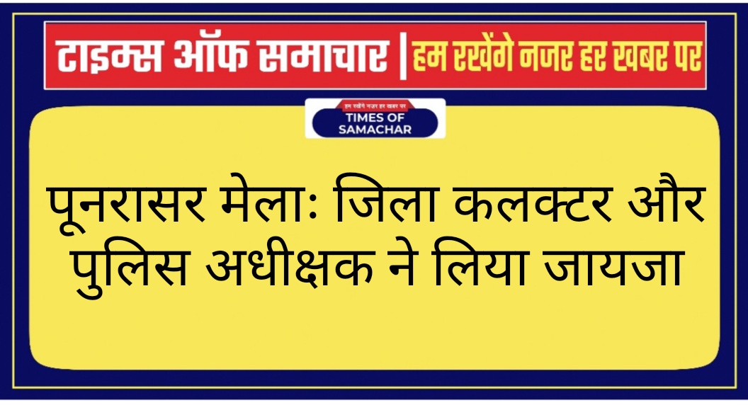 जिला कलक्टर एवं पुलिस अधीक्षक ने पूनरासर हनुमान मंदिर के दर्शन किए और आरती की। पुजारी रतनलाल बोथरा ने आरती करवाई। पुजारी महावीर बोथरा ने जिला कलक्टर एवं पुलिस अधीक्षक को शॉल, चादर एवं पुस्तक भेंट किया। उन्होंने बताया कि मेले के दौरान 25 पुजारी व्यवस्थाओं में तैनात रहेंगे। पुजारी ट्रस्ट के अध्यक्ष राजेंद्र बोथरा एंव पुजारी विनोद बोथरा सुरत से बीकानेर पहुँच चुके हैं। इस अवसर पर श्रीडूंगरगढ़ की उपखंड अधिकारी डॉ. दिव्या चौधरी, अतिरिक्त पुलिस अधीक्षक (ग्रामीण) सुनील कुमार, ट्रैफिक इंचार्ज प्रदीप चारण, सेरूणा थानाधिकारी रामचंद्र ढाका, सरपंच प्रकाश नाथ, राजेंद्र बोथरा, विनोद बोथरा, विजय बाफना, हर्षित मारू, मान नाथ, शुभकरण, नत्थानाथ, रामेश्वर नाथ, पार्षद सुनील गेधर एवं ग्रामीण उपस्थित रहे।