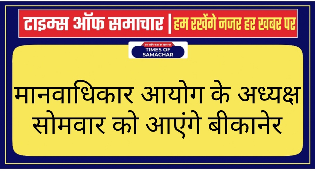 बीकानेर। राज्य मानवाधिकार आयोग के अध्यक्ष श्री गोपाल कृष्ण व्यास सोमवार, 5 सितम्बर को प्रातः 8 बजे जोधपुर से सड़क मार्ग द्वारा प्रस्थान कर दोपहर 1 बजे बीकानेर पहुंचेंगे तथा नोखा के पुलिस थाना एवं उप स्वास्थ्य केन्द्र का निरीक्षण करेंगे। श्री व्यास सांय 7 बजे सार्दुलगंज भवन, लॉयन्स सेवा सदन में आयोजित कार्यक्रम में शिरकत करेंगे तथा रात्रि विश्राम सर्किट हाउस में करेंगे। आयोग के अध्यक्ष श्री व्यास मंगलवार, 6 सितम्बर को प्रातः 7 बजे बीकानेर से जयपुर के लिए प्रस्थान करेंगे।