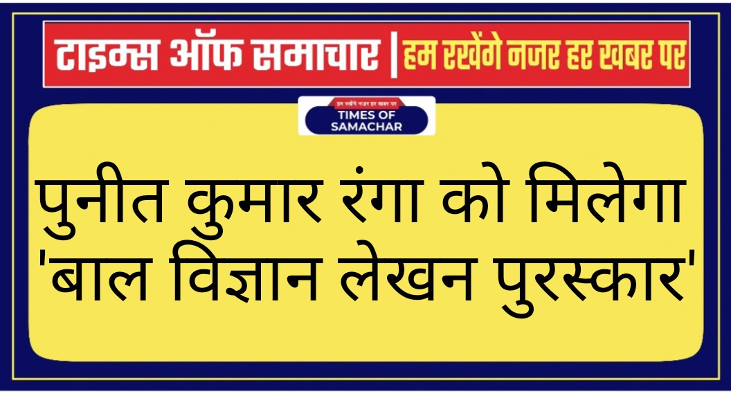 पुनीत कुमार रंगा को मिलेगा ‘बाल विज्ञान लेखन पुरस्कार’